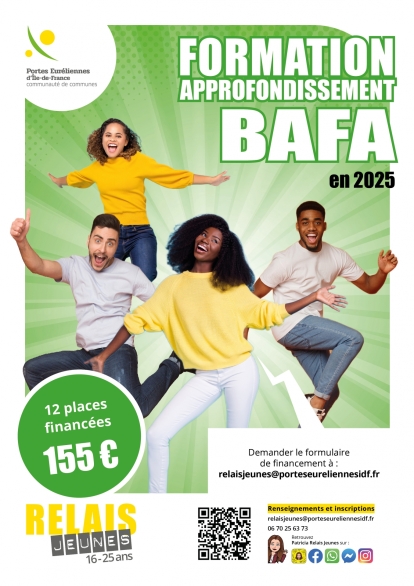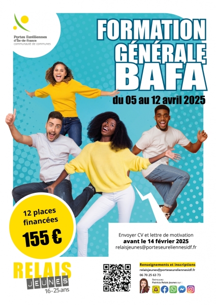 Etre domicilié dans la communauté de communes des Portes Euréliennes d’Île-de-FranceEtre âgé de plus de 16 ans et avoir moins de 25 ansAdresser une lettre de motivation et un CV Etre motivé et volontaireSi vous ne remplissez pas les critères vous pouvez toutefois vous rapprocher du Relais jeunes pour obtenir des informations sur les places supplémentaires ouvertes à toute personne âgée de plus de 16 ans.DEROULEMENT DE LA FORMATION Formation générale BAFA